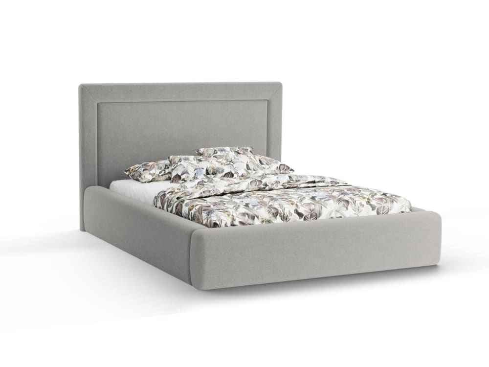 Reca Bedding Lit coffre avec tête de lit en tissu gris clair 140x190 cm Gris 190x25x140cm
