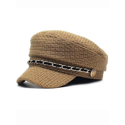 Cappello da donna in tweed intrecciato con dettaglio a catena, stile vintage, modello baker boy, per outfit casual e streetwear autunnali e invernali