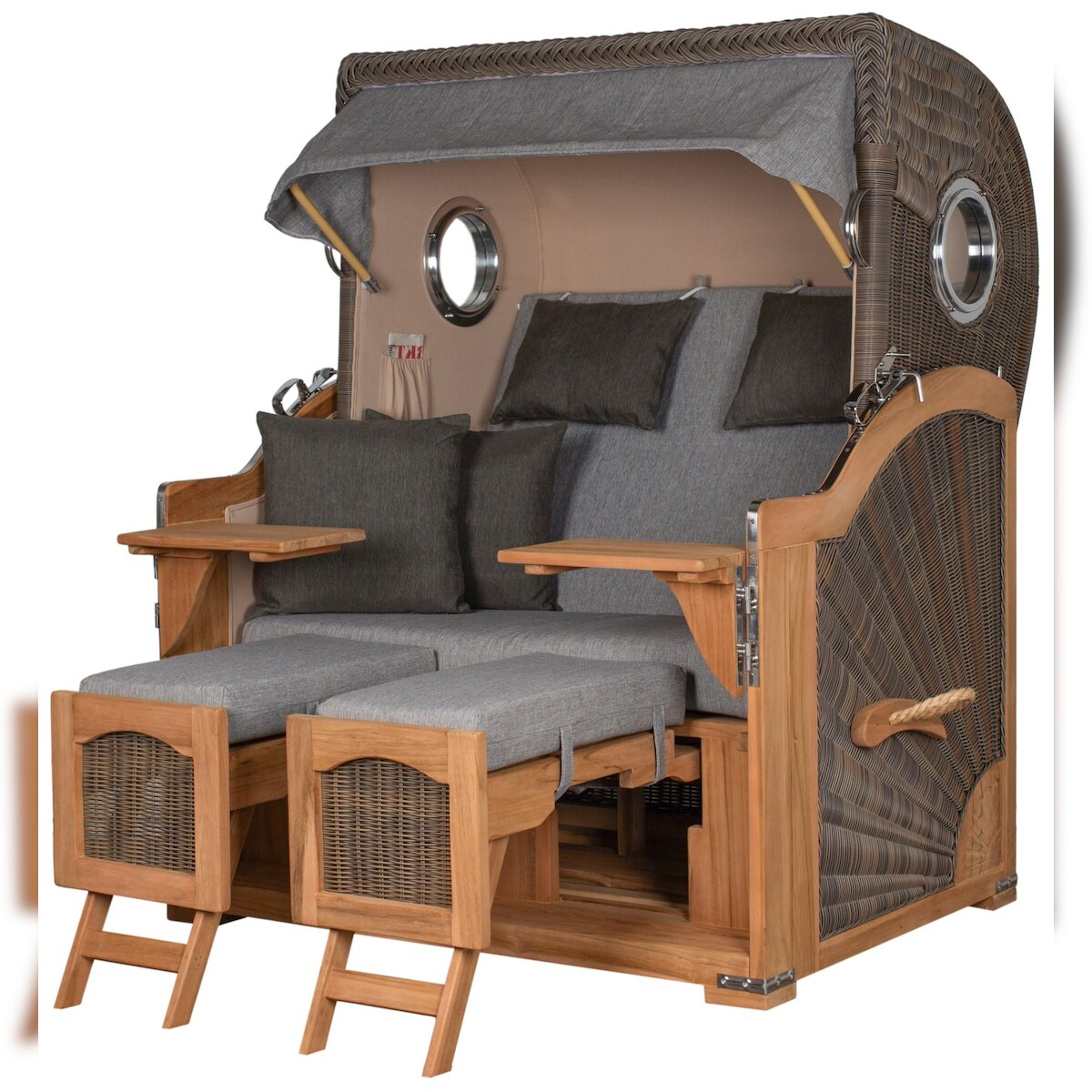 Mr. Deko Strandkorb Komplettset - bene living - Ammersee Teak - PE grau - Modell 570 - inkl. Liftersystem