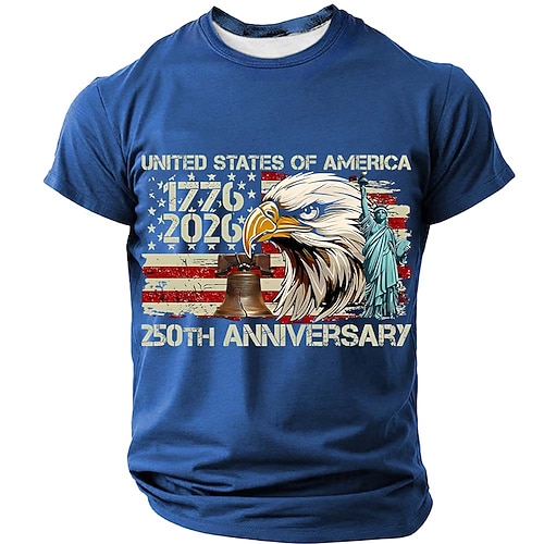 250° anniversario dell'America Per uomo Bandiera Americana Aquila Maglietta Manica Corta maglietta Stampa 3D Girocollo Camicia Quotidiano Militare Quotidiano Streetwear Blu Nero Rosso Estate Primavera