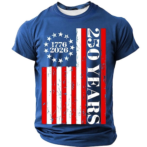 250° anniversario dell'America Per uomo Bandiera Americana Maglietta Manica Corta maglietta Stampa 3D Girocollo Camicia Quotidiano Militare Quotidiano Streetwear Blu Erica grigia Nero Estate Primavera