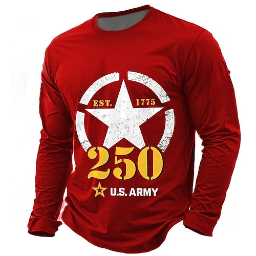250° anniversario dell'America Per uomo 250° anniversario degli Stati Uniti Maglietta Manica Lunga maglietta Stampa 3D Girocollo Camicia Quotidiano Casual Quotidiano Viaggio Feste Blu Nero Rosso