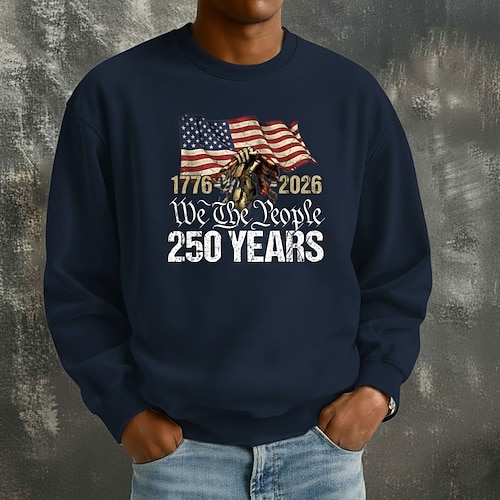 250° anniversario dell'America Per uomo Grafico Bandiera Felpa Girocollo Festival Nero grigio Nero Blu marino Beige Grigio Stampa 3D Inverno Primavera Autunno progettista S M L XL XXL XXXL
