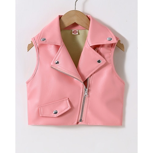 Bambini Ragazze Giacca in pelle nera Giacca di pelle Tinta unica Moda Cerniera Tasca All'aperto Cappotto Capispalla Dai 4 anni in su Autunno Argento Nero Rosa
