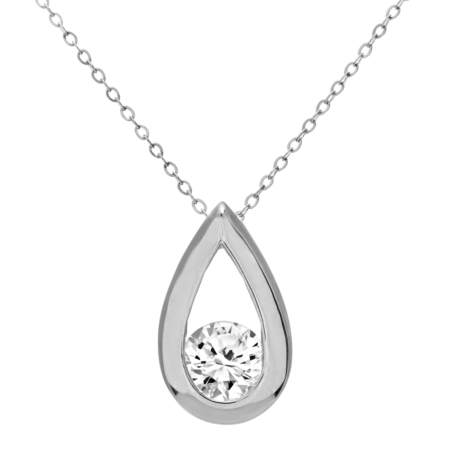 Diamant L'eternel Womens 9ct White Gold Half Carat Diamond Tear Drop Pendant and 18" Chain - One Size