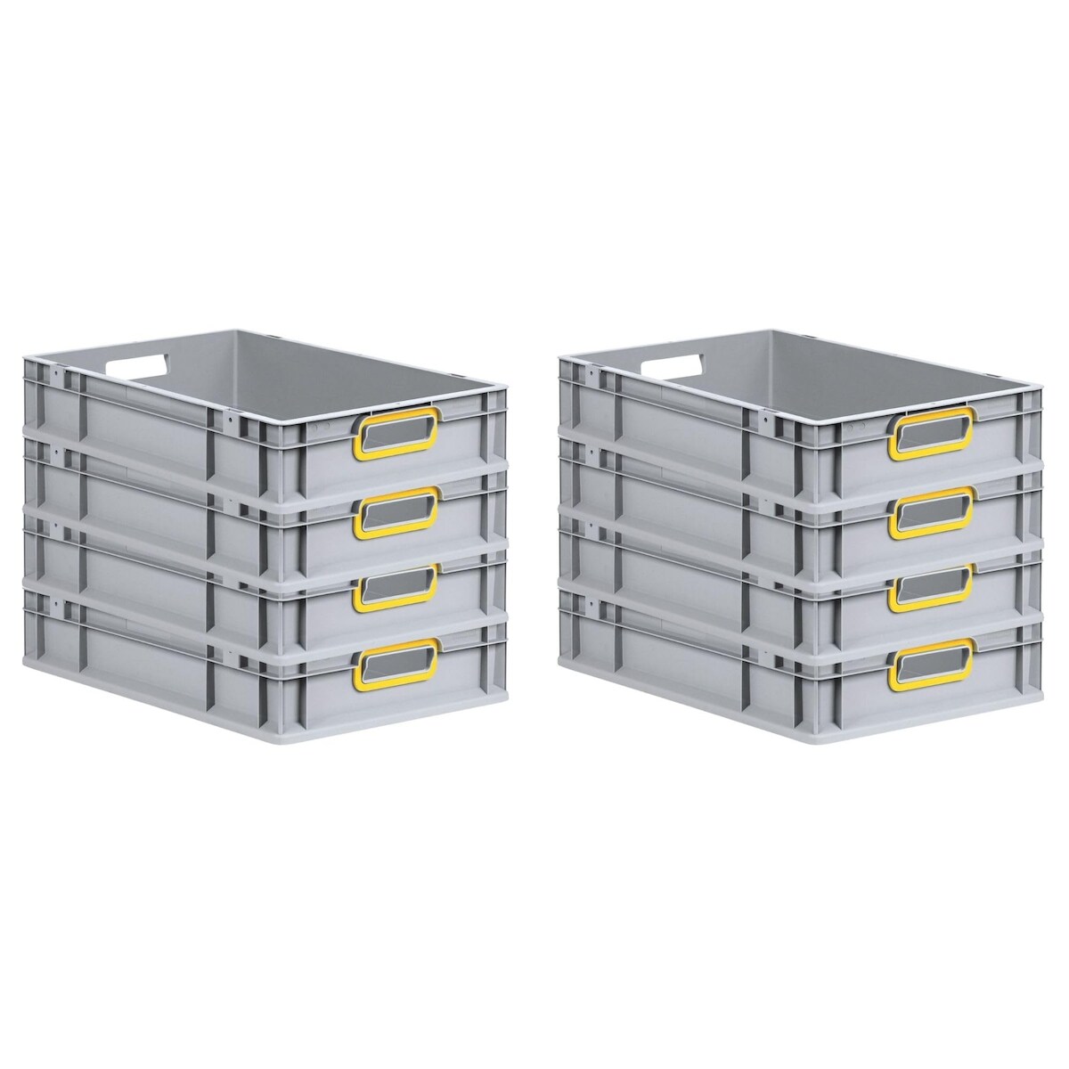 PROREGAL SuperSparSet 8x Eurobox NextGen Color, HxBxT 12x40x60cm, 23 Liter, Griffe gelb offen, Grau, Eurobehälter, Box, Transportbehälter