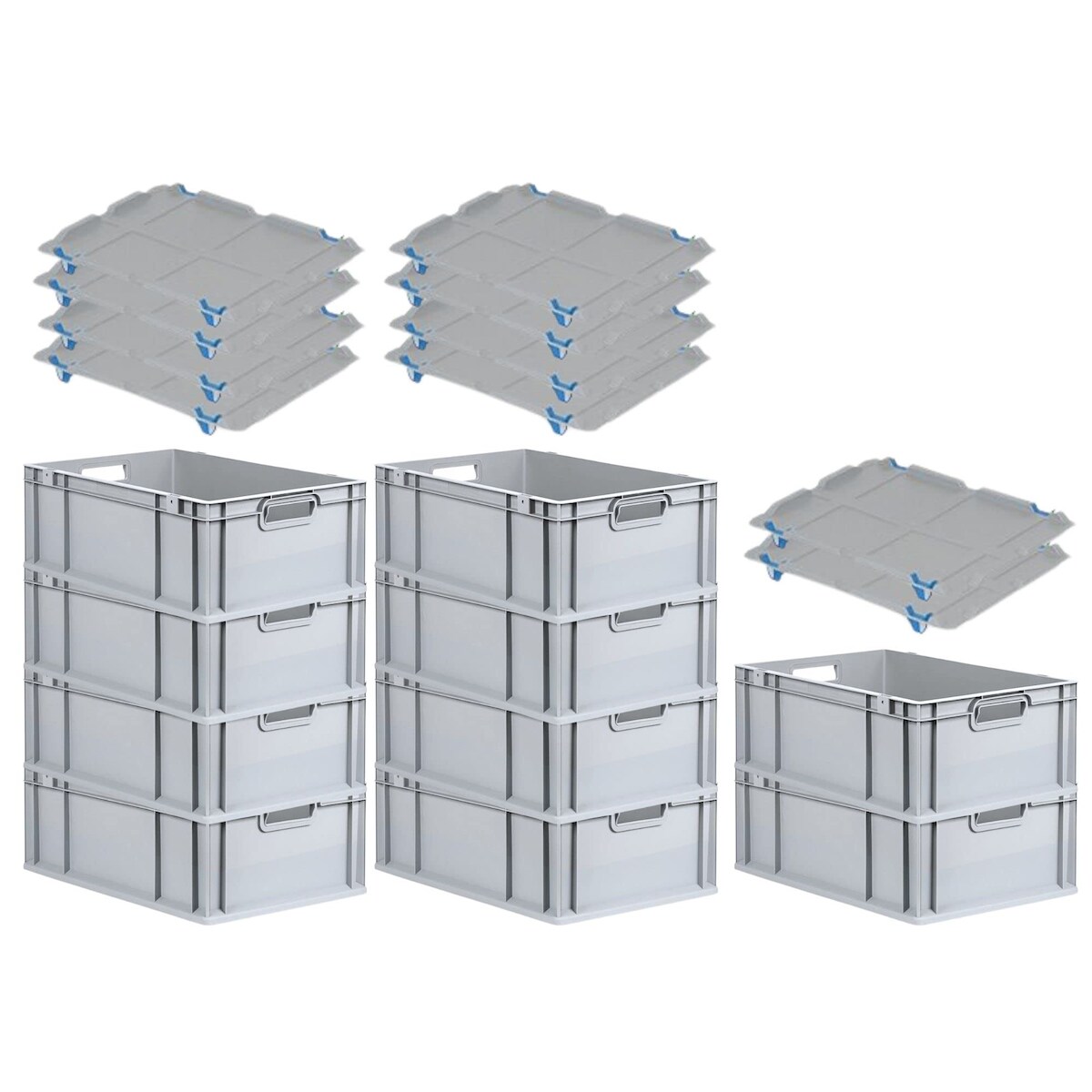 PROREGAL SparSet 10x Eurobox NextGen Economy mit Auflagedeckel & 4x Verschlüsse Blau, Griffe offen, HxBxT 22x40x60cm, 44L, Eurobehälter, Box
