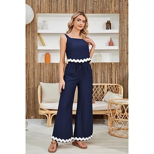 pantaloni canotta da donna con orlo ondulato, abito casual alla moda