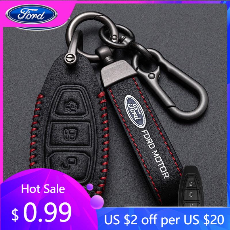 Autosticker Autosticker Ford Nieuwe Lederen Sleutelhanger Accessoires Auto Slimme Afstandsbediening Sleutelhoesje Voor Ford ST Line Fiesta Focus Monde