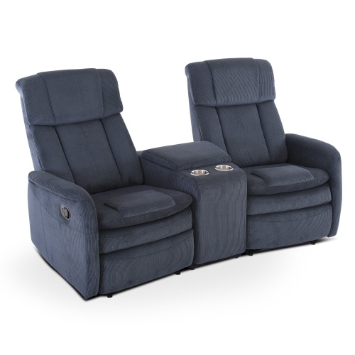 Kinosessel, 2er-Fernsehsessel mit mechanischer Relaxfunktion, Easy-Lift, für 2 Personen, 2 Getränkehalter, Cord-Mikrofaser in Marineblau, Raburg Max