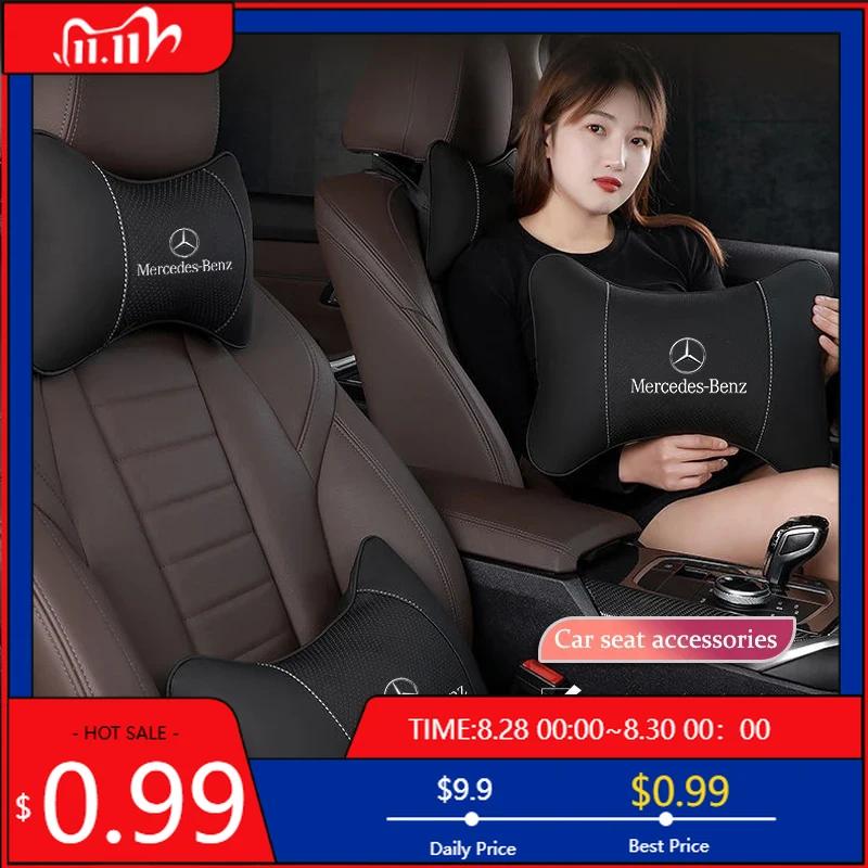 GLC GLB Autositz Kopfstütze Auto Logo Nackenkissen Für Mercedes Benz AMG W206 W204 W205 W212 W213 W221 W222 W223 W251 W464 W240 W2 sattel braun