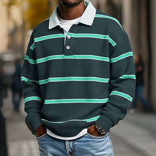Per uomo A righe Magliette Polo a Nido d'Ape Polo da rugby Manica Lunga Magliette polo Camicie con Colletto Casual Athleisure Abbigliamento quotidiano Bottoni Primavera Autunno Inverno Blu Viola Verde