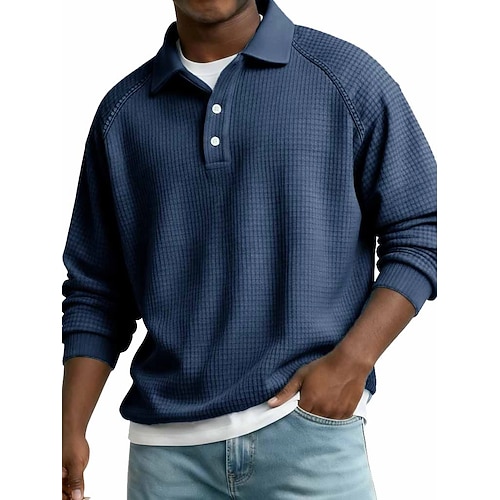 Per uomo Polo da Golf Polo a Maglia Waffle Casuale Affari Colletto Polo a Coste Manica Lunga Moda Essenziale Tinta unica Lavoro a maglia Autunno Inverno Tutte le stagioni Vestibilità regolare Vino