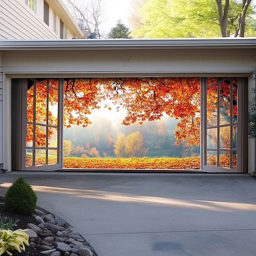 Copertura per porta del garage Grande appeso 森林 Rustico 3D Da serata All'aperto Sfondi di ripresa Porta d'ingresso Decorazioni Parete Porta Sfondo