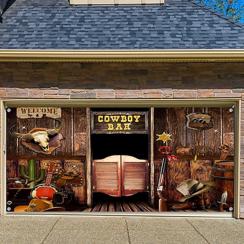 Copertura per porta del garage Grande appeso Cowboy Fienile Western Rustico Da serata All'aperto Sfondi di ripresa Porta d'ingresso Decorazioni Parete Porta Sfondo