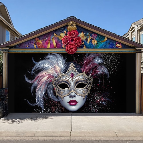 Martedì grasso Copertura per porta del garage Grande appeso Pagliaccio Lusso 3D Da serata All'aperto Sfondi di ripresa Porta d'ingresso Stile Carnevale di Venezia Arredamento per la casa