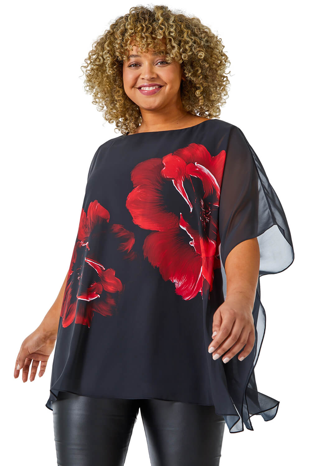 Roman Womens Curve Floral Chiffon Overlay Top - Red - Size 16 UK | Roman Sale | Discount Designer Brands