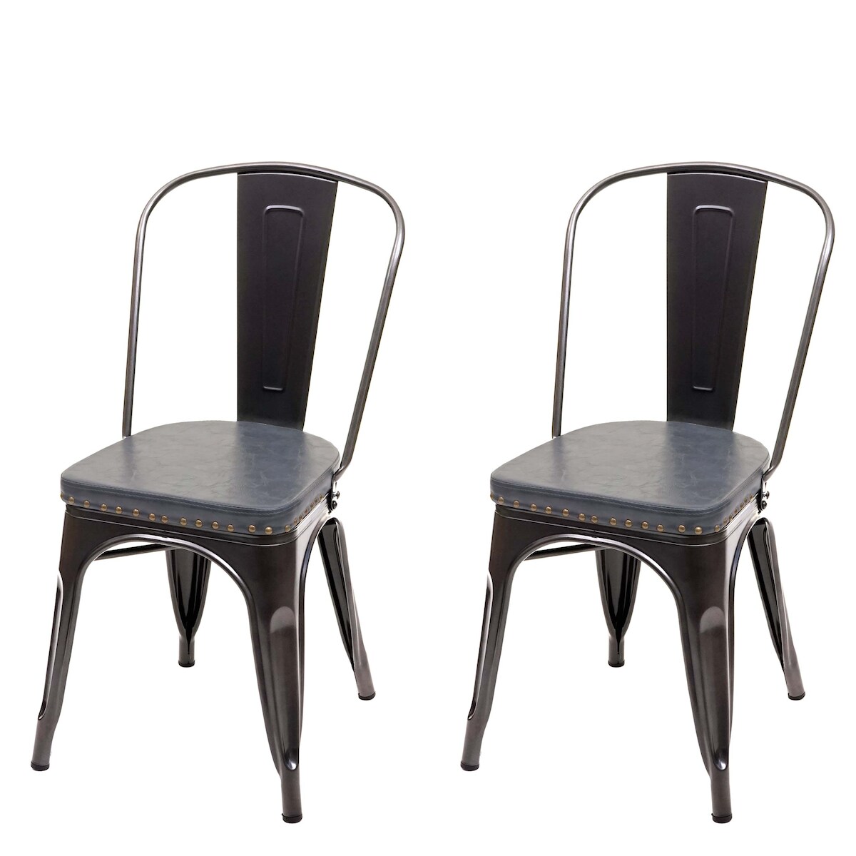 Mendler 2er-Set Esszimmerstuhl HWC-H10e, Küchenstuhl Stuhl Chesterfield Metall Kunstleder Industrial Gastronomie ~ schwarz-grau