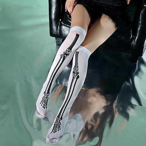 Teschio scheletro Sangue Calzini Calze alte fino alla coscia Orrore Costume Spaventoso Adulti Per donna Halloween Carnevale Feste Performance Costumi di Halloween facili Vestirsi