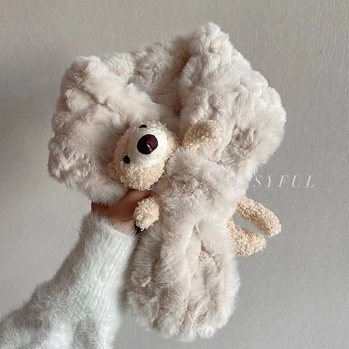 sciarpa natalizia da donna in pelliccia sintetica di coniglio con pompon, accessorio invernale morbido e accogliente per feste e regali