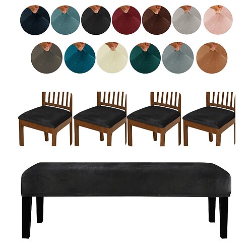 copri panca elastici in velluto argentato tinta unita, set di protezioni per panca, antiscivolo, 4 copri panca 1 copri panca lungo, copri sedie resistenti ed eleganti
