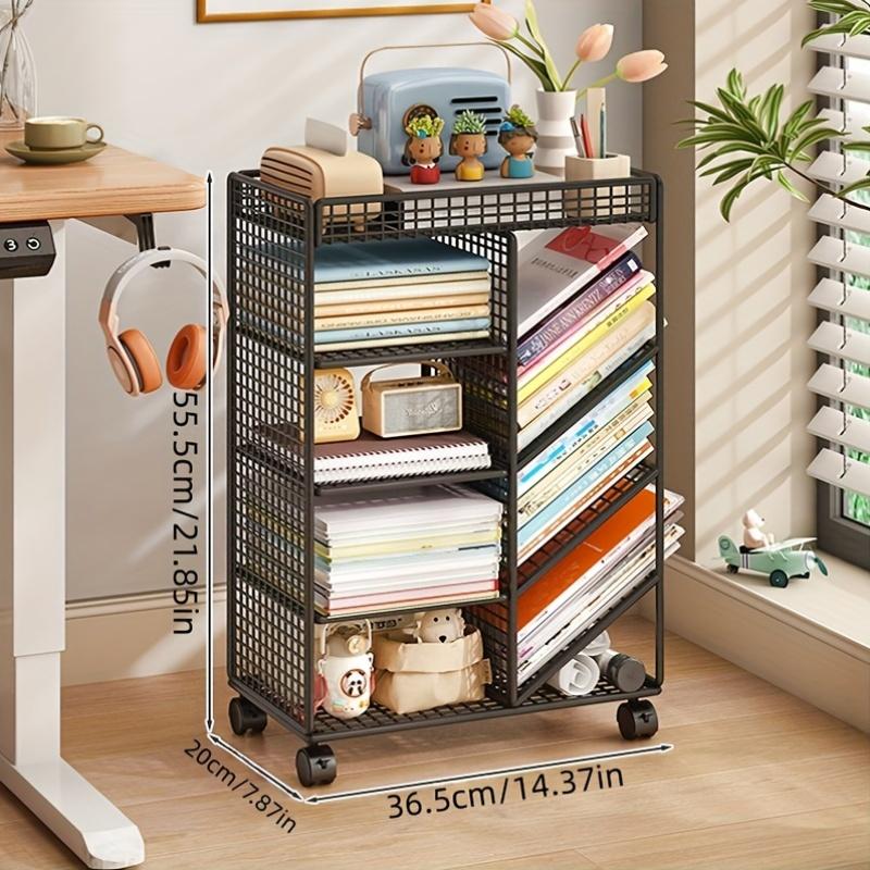 Rolling Book Cart - Metal Mobile Bookshelf, Desk Organizer & Corner Display Shelf, Space-Saving Rolling Cart for Home , Library black