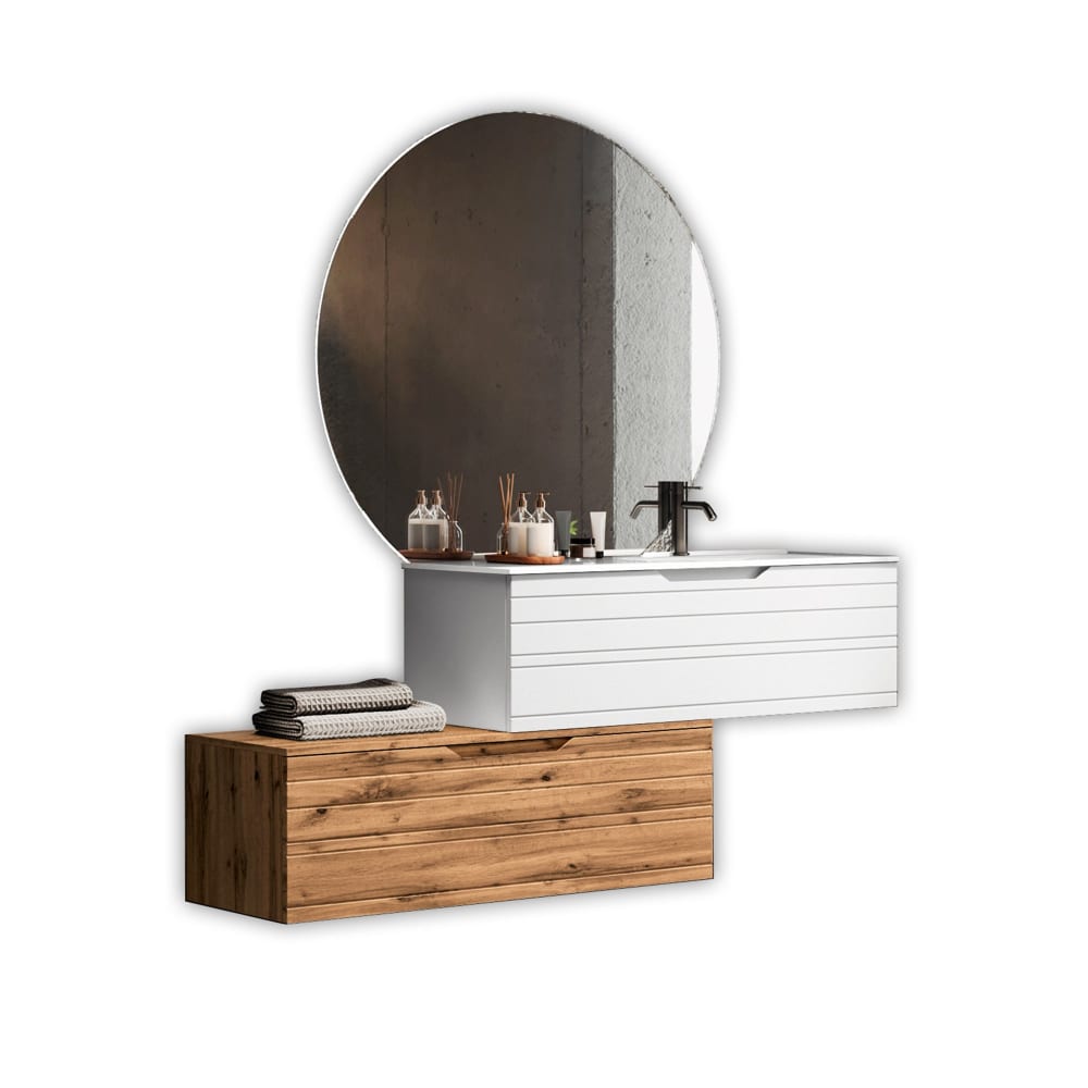 Composition de salle de bain vasque droite 4 pièces en MDF blanc/chêne