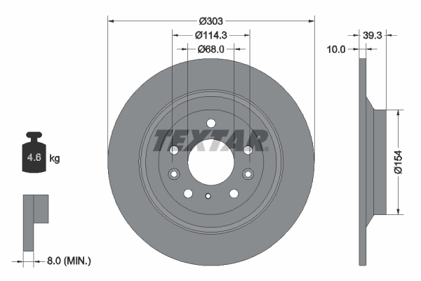 TEXTAR Bremsscheibe PRO 92324803 hinten rechts links voll 303mm für MAZDA DGJ626251