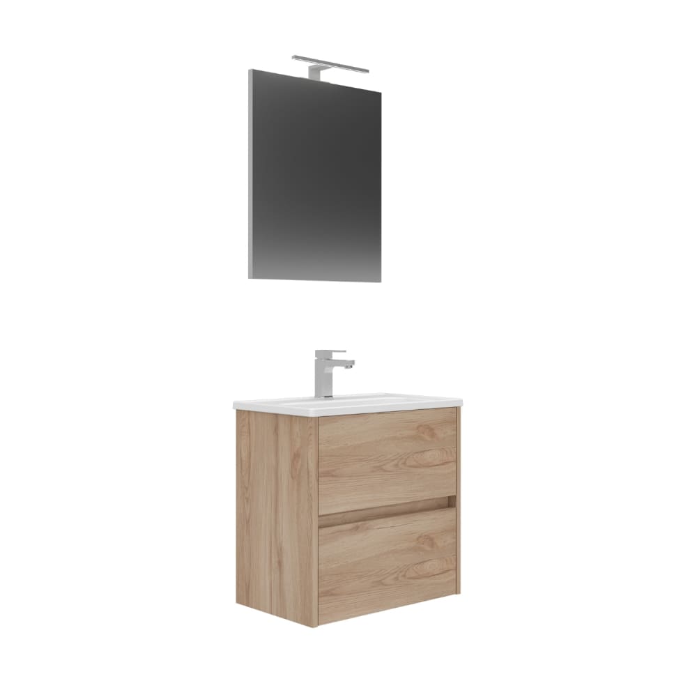 Set di mobili da bagno con lavabo effetto legno marrone 80cm