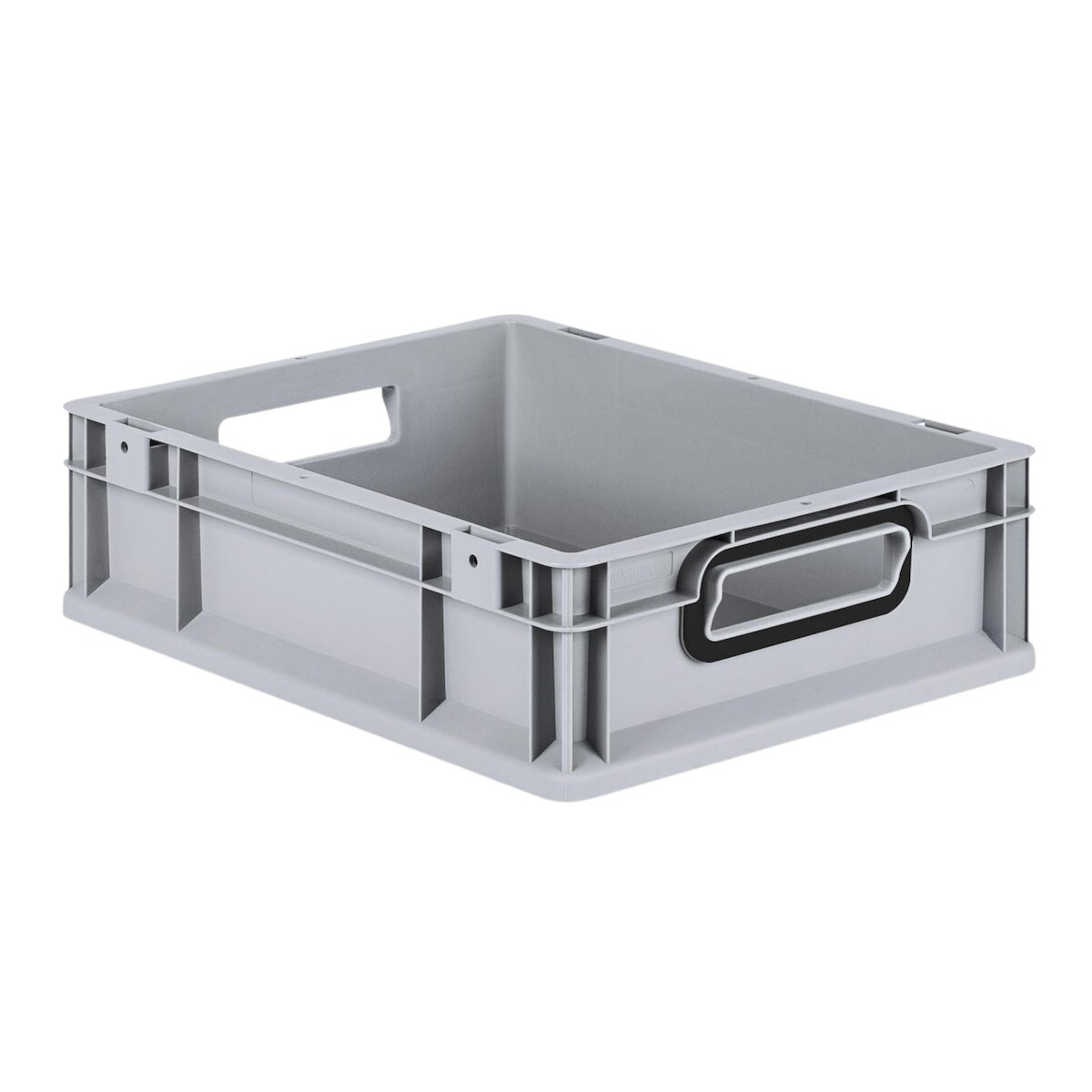 Proregal Eurobox NextGen Color, HxBxT 12x30x40cm, 11 Liter, Griffe schwarz offen, Grau, Eurobehälter, Transportbehälter