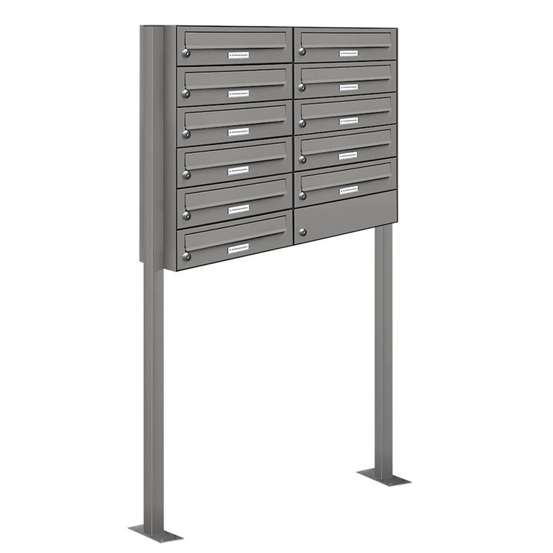 AL Briefkastensysteme 11 Fach Premium Stand Briefkasten Anlage in RAL 9007 Aluminium Grau, Post A4, robust, wetterfest, Artikelnummer: 132P11S2P9007