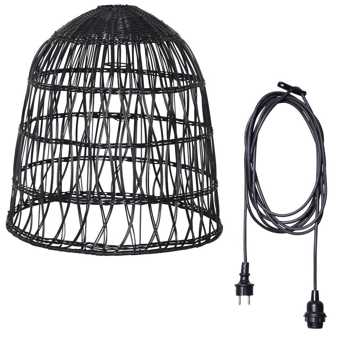 MARELIDA Lampenschirm BELL Rattanstil outdoor mit E27 Fassung H: 50cm schwarz für Außen