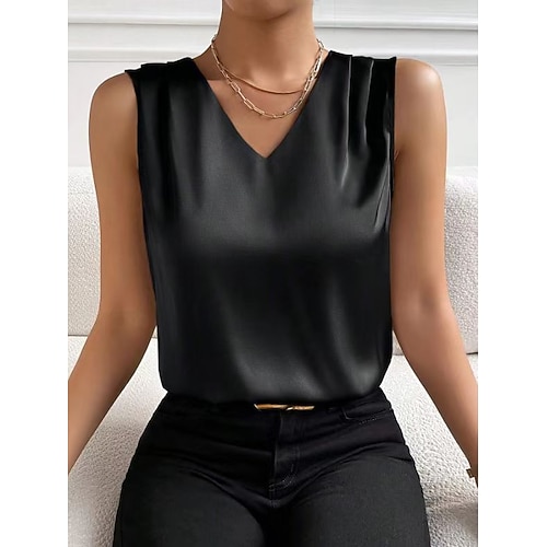 canotta in raso da donna nera bianca rossa tinta unita spalle scoperte moda da strada quotidiana scollo a V vestibilità regolare s
