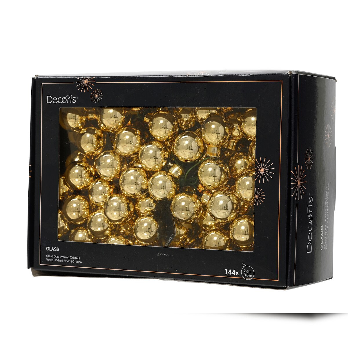 144 Weihnachtskugeln am Draht Glas 2cm mini Spiegelbeeren zum Basteln gold
