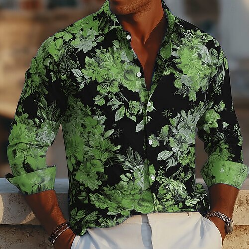 Per uomo Stampa Floreale Bagliore al neon Fiori Camicia Camicia con Bottoni Camicia casual Manica Lunga Hawaiano Vacanza Quotidiano Abbigliamento casual alla moda Estate Primavera Collo ripiegato