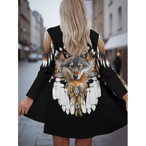 Per donna Cappotto Invernale Trench Leggero Confortevole Stampato Aperturaanteriore Vintage Moda Casual Animale Vacanza Casuale Lungo Senza colletto Vestibilità regolare Manica Lunga Capispalla Nero