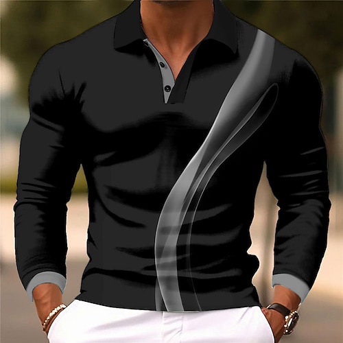 Per uomo Divertente Polo con zip Manica Lunga Magliette polo Colletto Business Casual Vacanza Abbigliamento da sera Abbigliamento Quotidiano Stampa 3D Primavera Autunno Inverno Nero Vino Blu