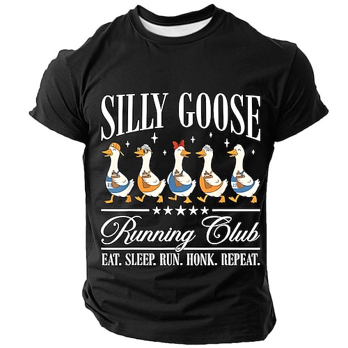 Silly Goose Running Club Mangia Dormi Corri Suona Il Clacson Ripeti Divertente T-shirt Grafica Viola Chiaro da Uomo Abbigliamento S M L XL XXL XXXL