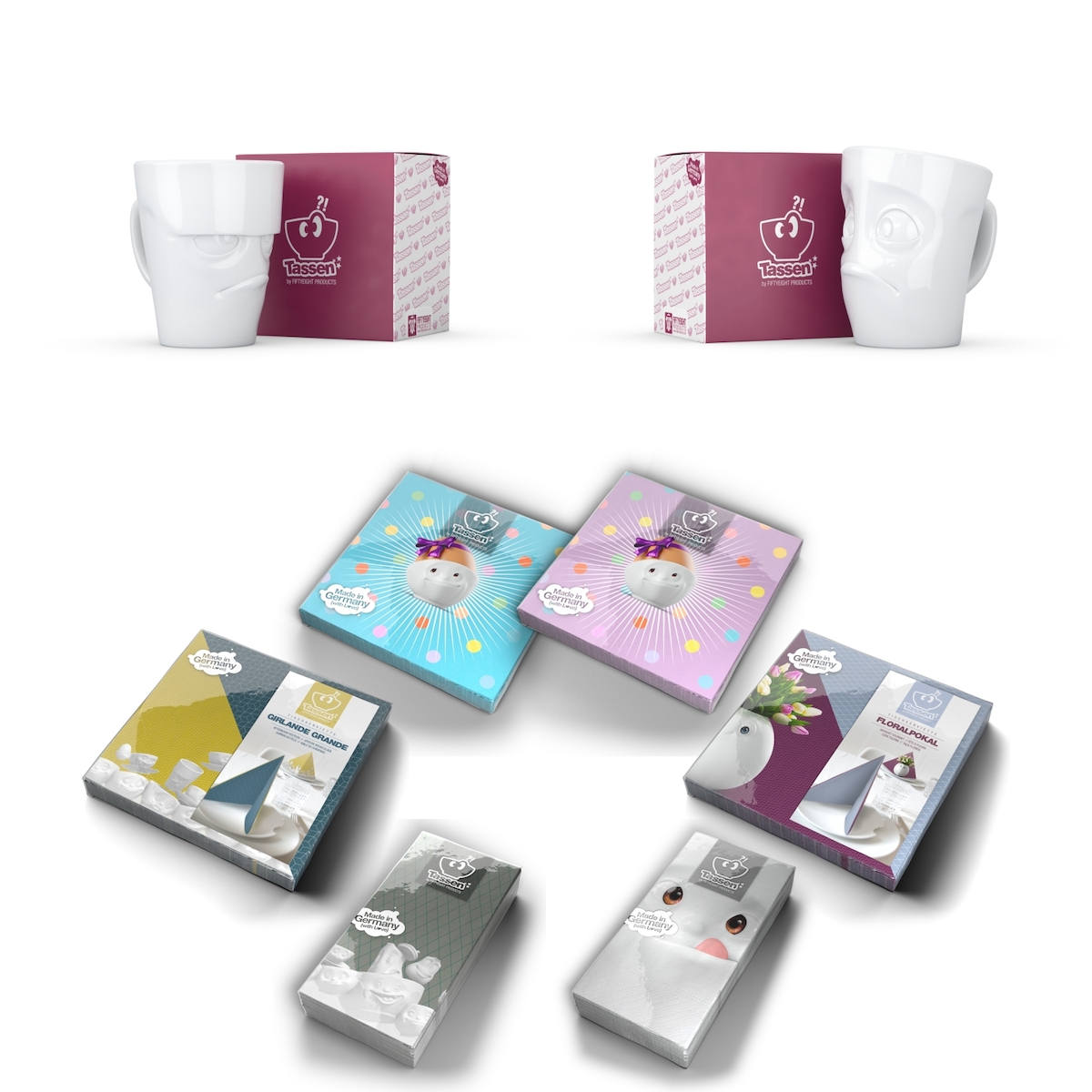 Henkelbecher-Set 2-tlg. - jeweils 350 ml + Servietten - FIFTYEIGHT Henkelbecher - Dekor Weiß - 1 Set