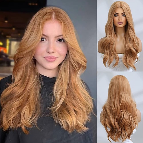 parrucche del film barbiecore parrucche bionde per le donne parrucche sintetiche ricci lunghe da 26 pollici parte centrale parrucche bionde con riflessi parrucche ondulate sciolte resistenti al calore