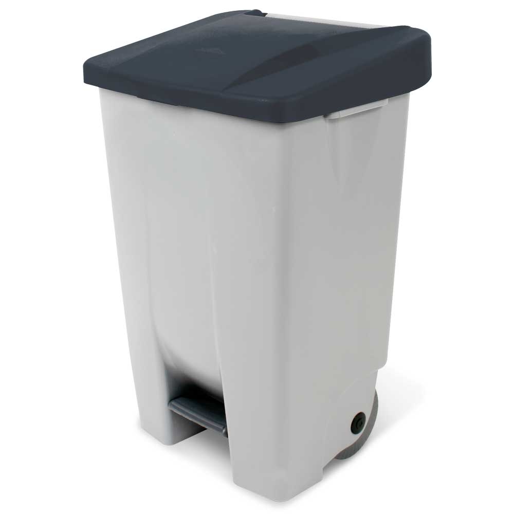BRB Tretabfalleimer mit Rollen, Inhalt 80 Liter, HxBxT 740 x 490 x 420 mm, Korpus grau, Deckel schwarz