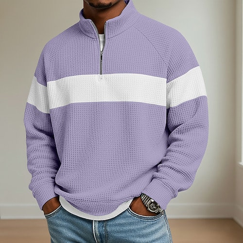 Per uomo POLO Polo con zip a un quarto Ufficio Informale Colletto classico Chiusura lampo quarto Manica lunga Di tendenza Lavoro Color Block Collage Cerniera Inverno Autunno inverno Standard Vinaccia