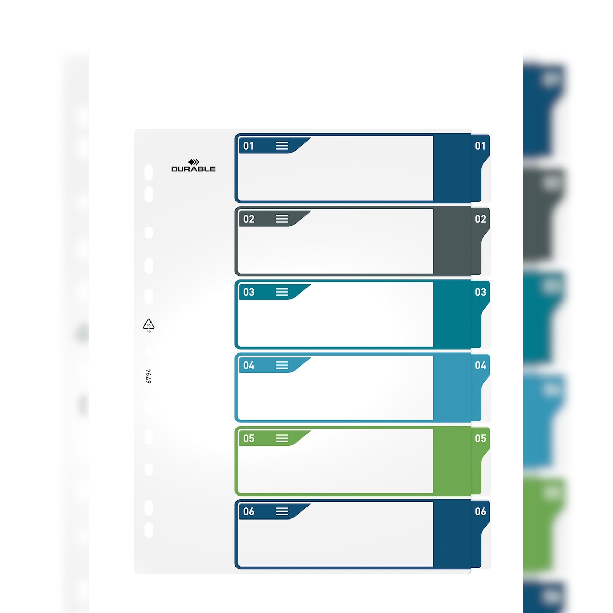 Durable 6794 27 Ordnerregister - 1 - 6, PP, A4+, 6 Blatt + Indexblatt, weiß/farbig