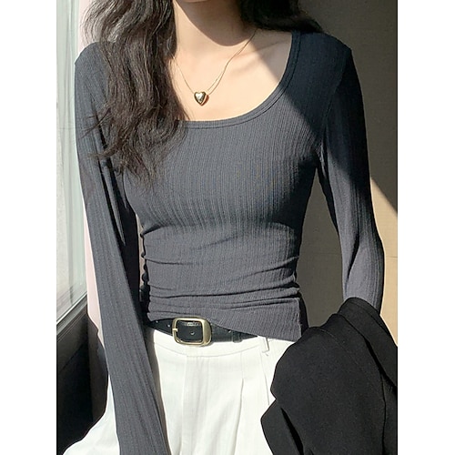 Per donna Blusa Tinta unica Elegante Essenziale Casual Manica Lunga Scollo Tondo Top Regolari Quotidiano Nero Bianco Verde militare Verde Grigio scuro Primavera Autunno Inverno