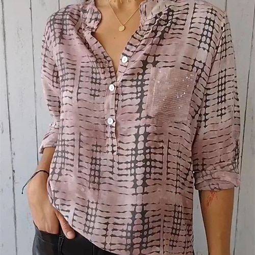 Per donna Blusa Semplice Elegante Moderno Manica Lunga Scollo a V Top Regolari Quotidiano Ferie Tasca Bottoni Stampato Nero Rosso Azzurro cielo Marrone Grigio Estate Primavera Autunno