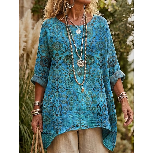 Per donna Camicia Blusa Floreale Grafico Vintage Quotidiano Elegante Manica Lunga Girocollo Top Regolari Uscire Stampato Blu Rosso Arancione Verde Estate Primavera Autunno