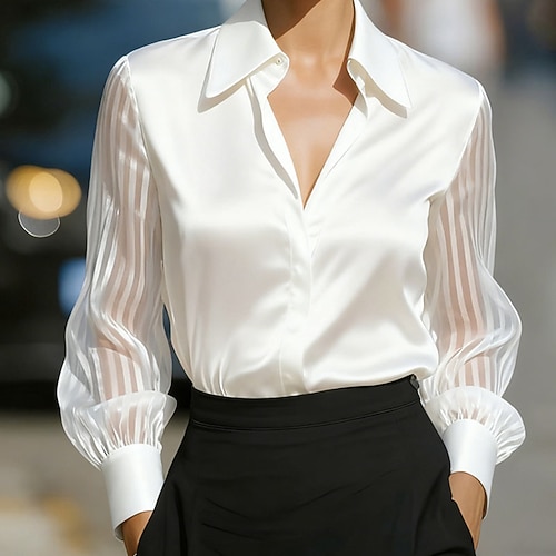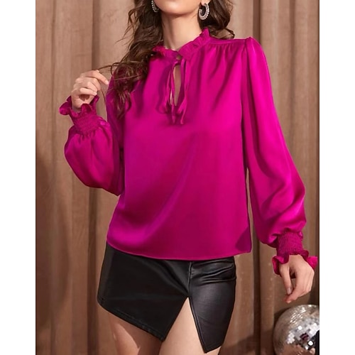 Per donna Camicia Elegant Raso/Satin Blusa Semplice Elegante Vintage Signore Manica Lunga Colletto a Camicia Top Regolari Quotidiano Lavoro Ferie Arricciato Traforato Bottoni Nero Bianco Rosso Blu