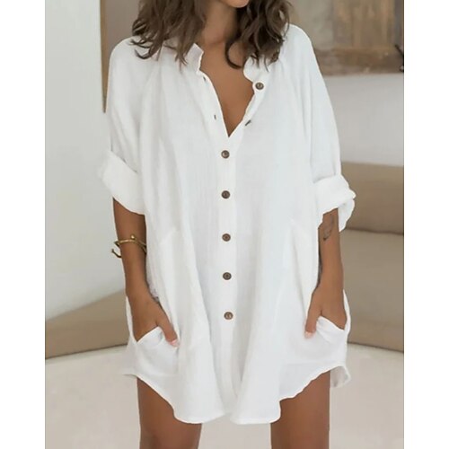 Per donna Camicia Camicie di cotone e lino Abbottonare Blusa Semplice Elegante Casual Manica Lunga Colletto a Camicia Top Regolari Quotidiano Bottoni Nero Bianco Rosa Verde Primavera Autunno