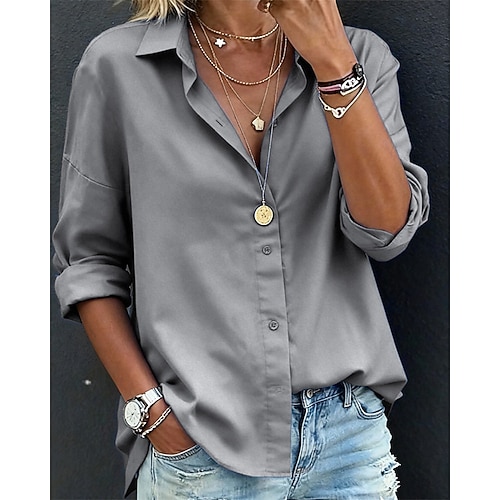 Per donna Blusa Tinta unica Elegante Classico Casual Manica Lunga Colletto a Camicia Top Regolari Quotidiano Bottoni Nero Rosa Vino Blu marino Cammello Primavera Autunno Inverno