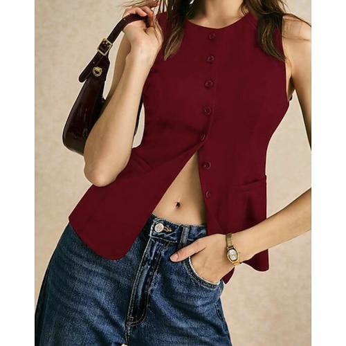 Per donna Blusa Semplice Attivo Elegante Senza Maniche Girocollo Top Regolari Quotidiano Ferie Uscire Tasca Bottoni Nero Bianco Vino Marrone Cachi Estate Primavera